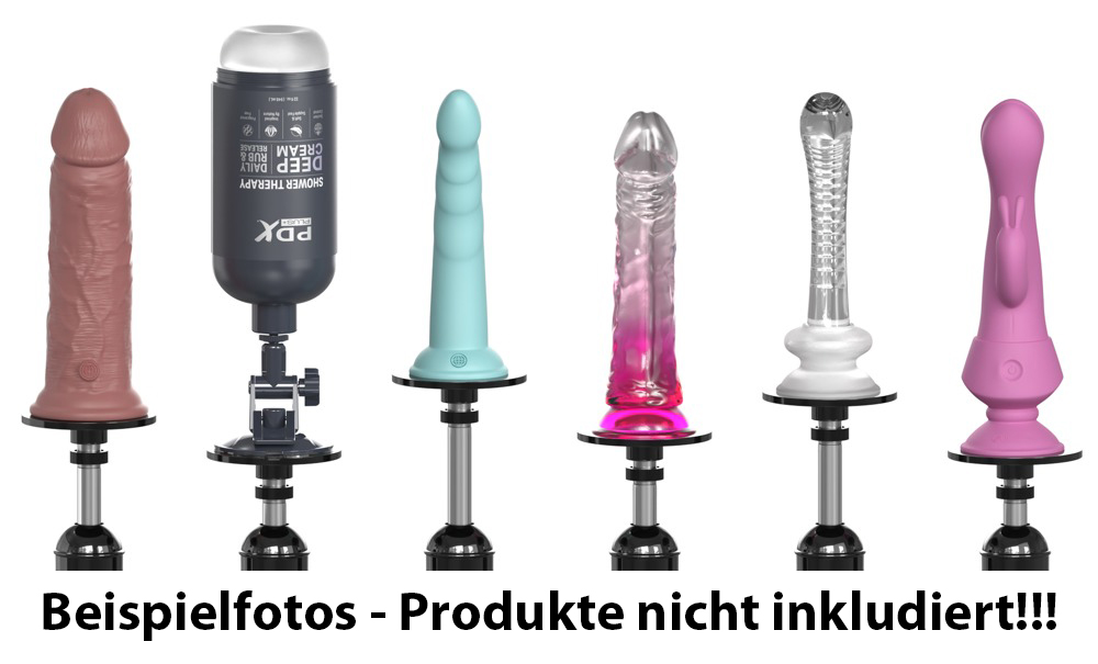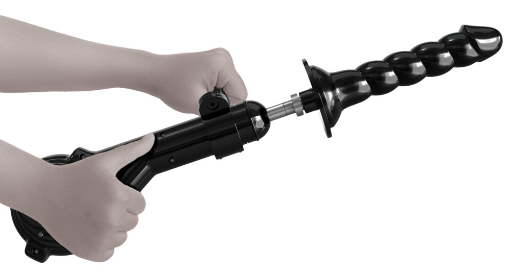Der beiliegender Dildo verfügt über einen Saugfuß, der auf der patentierten Push & Play Andockplatte (Ø 8,9 cm) perfekt haftet. So ist der Rillendildo schnell und einfach am Stoßarm der Sexmaschine angebracht. Auch jedes andere herkömmliche Saugfuß-Toy (z. B. Dildo, Vibrator, Masturbator) kann an der Andockplatte leicht befestigt werden.