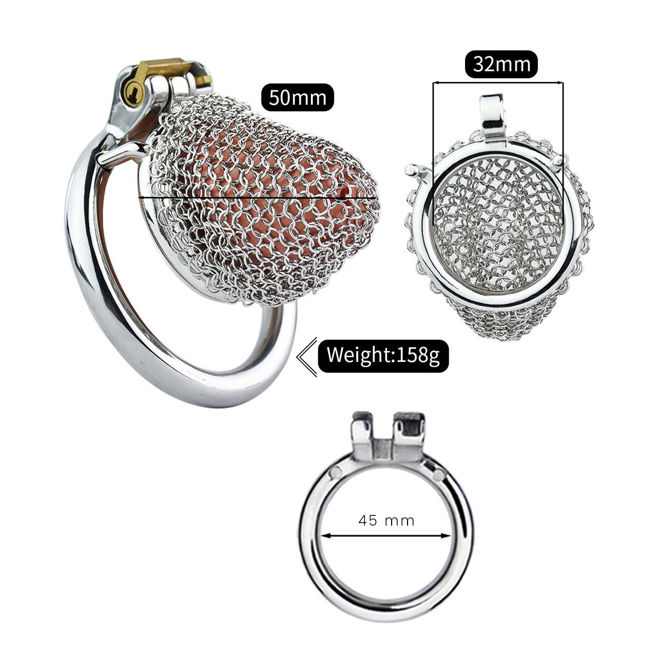 Wir stellen dir unseren Keuschheitskäfig aus Stahlgeflecht in der Größe Small (S) vor. Dieser mit Präzision aus hochwertigem Edelstahl gefertigte Käfig bietet höchsten Komfort und Haltbarkeit. Das aufwendig gestaltete Netzmuster sorgt für hervorragende Belüftung und Hygiene. Mit einer verlängerten Einführlänge und einer großzügigen Innenspitzenöffnung eignet sich dieser Käfig für Sklaven mit sehr kleinen Schwänzen und bietet einen sicheren Sitz ohne Kompromisse beim Komfort. Der Käfig wird standardmäßig mit einem Basisring mit Innendurchmesser von 45 mm geliefert. Wir bieten jedoch auch die Cockring-Durchmesser 40mm, 50mm und 55mm an. Sein dezentes Design ermöglicht ein angenehmes Tragen unter der Kleidung bei täglichen Aktivitäten. Dieser Keuschheitskäfig ist mühelos zu reinigen und leicht zu pflegen.
