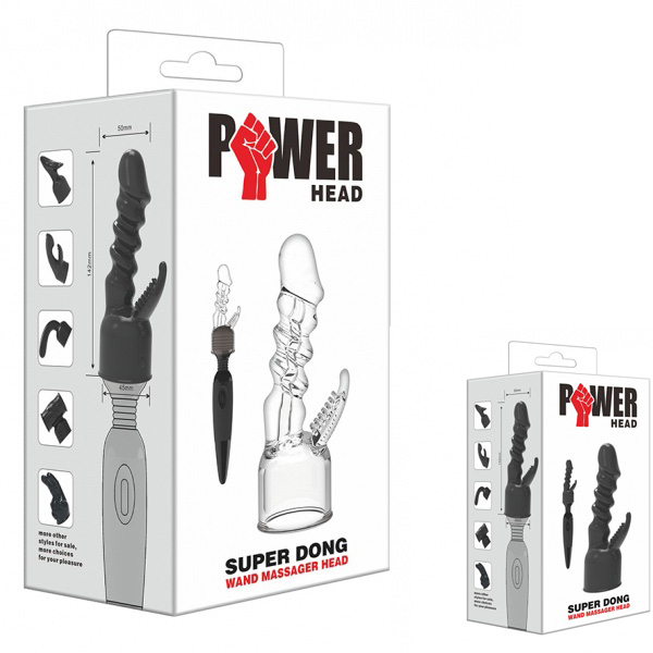POWER Super Dong ist ein Aufsatz für deinen Wand, wenn du nicht nur Vibration willst, sondern Fläche und spürbare Breite. Der Durchmesser liegt bei bis zu 4,5 cm. Auf der Hülle sieht man eine gerippte, kräftige Form, die bei jedem Kontakt deutlich fühlbare Kanten setzt.
