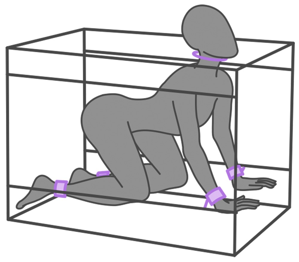 Geschlossene BDSM-Kabine La Niche von Secret Dome für GloryHole-Spielereien, Dark Games, fesselnde Rollenspiele und weitere Fantasien. Die stabile Kabine ist mit ihrem Rohr-Stecksystem und robuster Plane schnell aufgebaut und einsatzbereit. Mit 3 große Öffnungen an den Seiten. Die Öffnung für den Kopf ist mit Reißverschluss und breiter, verstellbarer Halsmanschette ausgestattet. Bequemer Einstieg über Reißverschluss-Tür. Ein LED-Licht und eine weiche Bodenmatte sorgen für mehr Komfort. Die beiliegenden Hand- und Fußfesseln (jeweils 1 Paar) können innen ganz nach Wunsch platziert werden. Die weich gepolsterten Manschetten sind mit Schnallenverschlüssen schnell angelegt und angepasst.