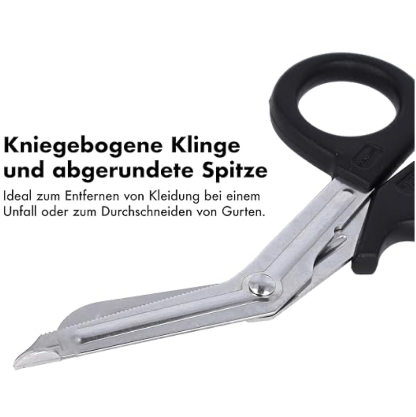 • Sicher & effizient im Einsatz – Abgerundete Spitze und gebogene Klinge ermöglichen ein sicheres Entfernen von Seilen. Schützt die verletzte Person.