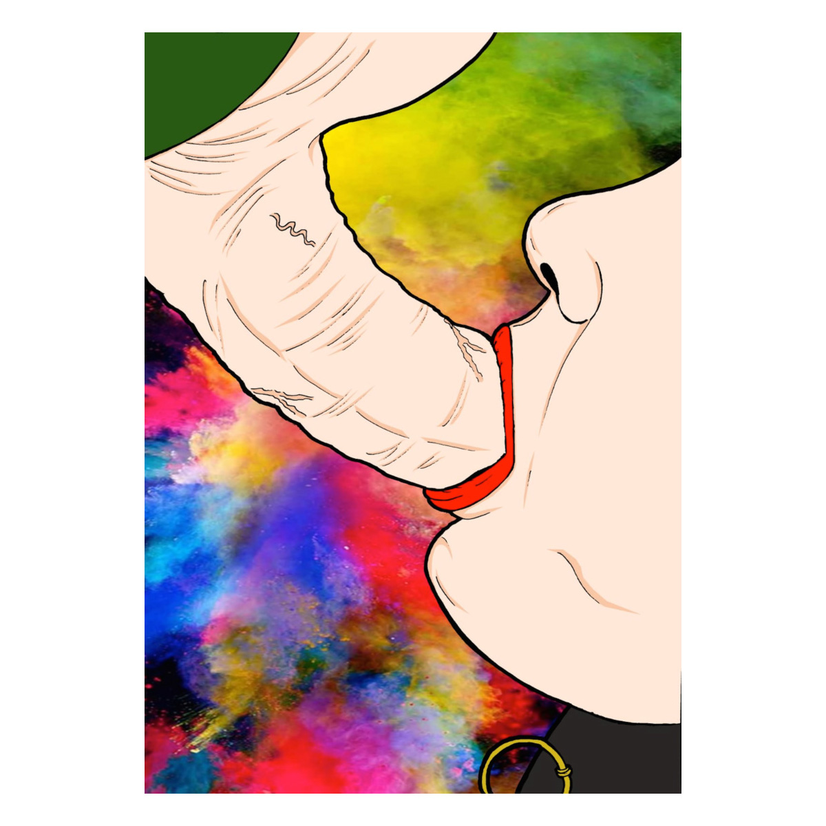Ein Kunstwerk wie dieser Print eröffnet einen eindrucksvollen Blick auf die illustrativen Arbeiten von Alex Okami. Das Motiv verbindet präzise Linienführung mit expressiven Farben, die sich in kräftigen Übergängen über den Hintergrund verteilen. Im Vordergrund steht eine stilisierte Figurendarstellung mit klar gesetzten Konturen, die das Auge direkt auf die zentrale Szene lenkt. Die Komposition lebt von Kontrasten zwischen weichen Farbflächen und deutlichen Formen, wodurch ein intensiver visueller Fokus entsteht.