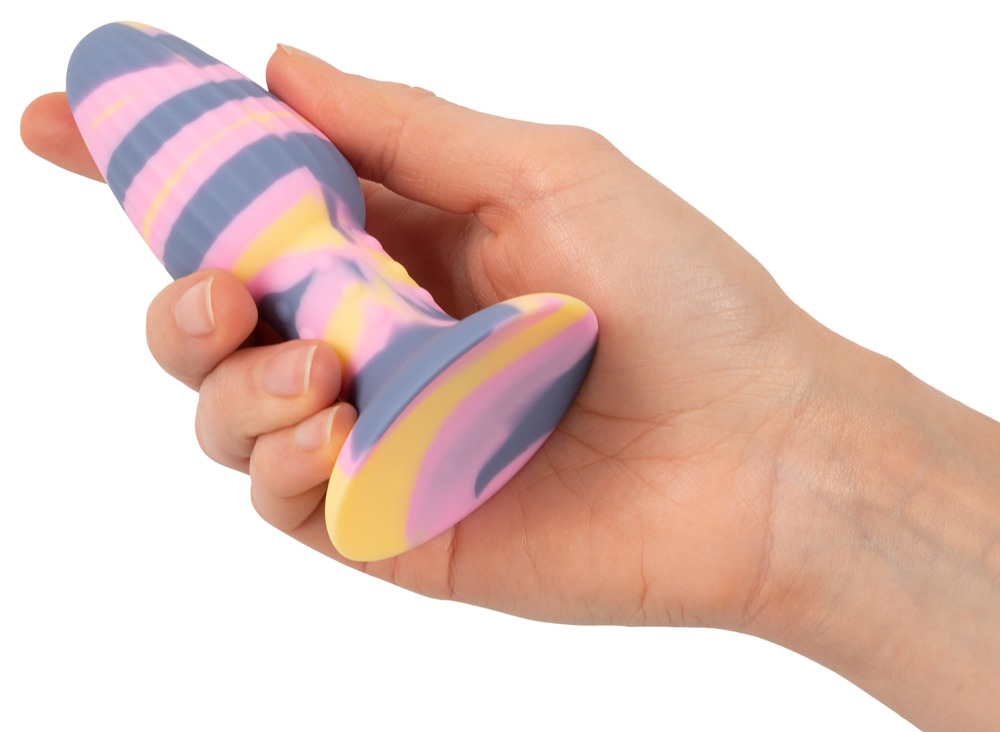 Der bunte Colorful Joy Triple Colour Butt Plug von You2Toys bringt Farbe ins anale Spiel! In 3 Farben individuell gegossen, sieht jeder Analplug mit seiner Farbmaserung anders aus und ist somit optisch einzigartig! Der stylische Plug ist klassisch konisch geformt mit schmal zulaufender Spitze für leichtes Einführen. Dazu ausgeprägte Rillen, sowie Noppen an der Verjüngung für intensive Stimulationen und guten Halt.