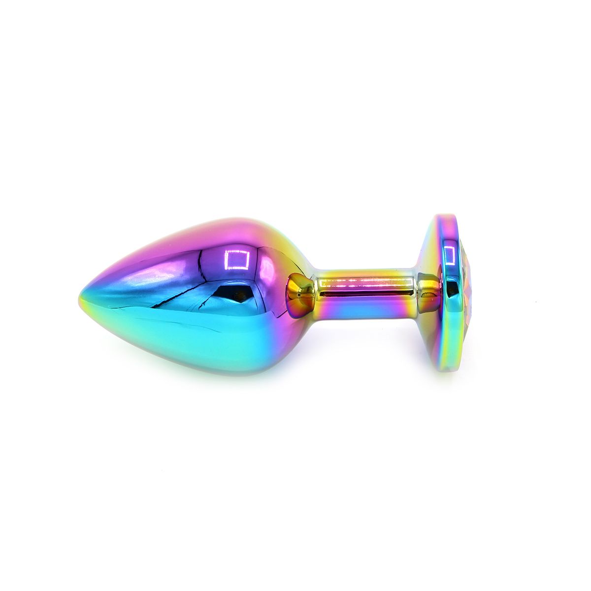 Edler Analplug aus Aluminium mit schillernder Regenbogenbeschichtung und funkelndem Kristallfuß. Glatt, hygienisch, temperaturspielgeeignet. Ein optisches und sinnliches Highlight.