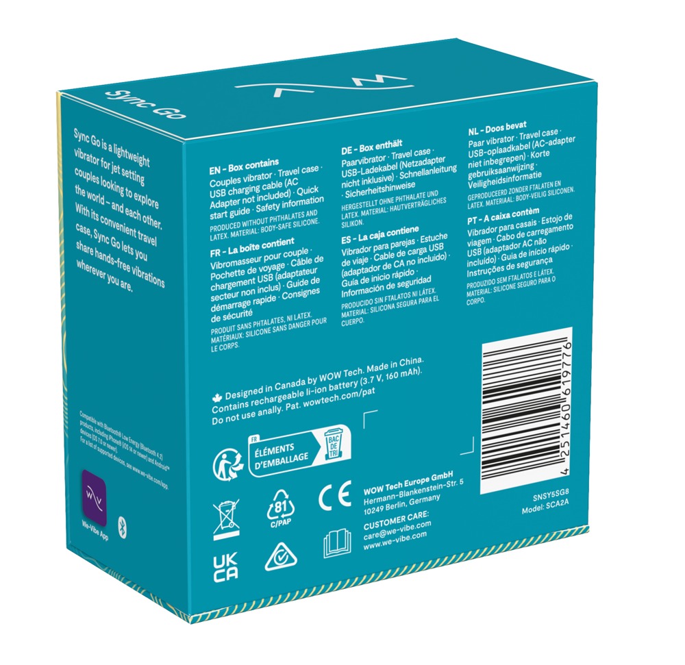 Der Sync Go ist per Bluetooth kompatibel mit der We-Vibe App für IOS und Android. Hier kann man individuelle Stimulationsprogramme selber kreieren und die Vibrationen bequem über das Smartphone steuern. Auch Vibrationen im Rhythmus von Musik sind möglich. Die We-Vibe App ermöglicht ebenfalls sexuelle Nähe auf Distanz. Zusätzliche Voice-, Chat- und Videofunktionen sind ebenfalls in der App integriert. Spaß überall ist möglich, da der Sync Go wasserdicht ist.